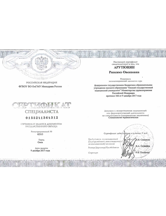- В 2016 году получила сертификат о прохождении интенсивного курса «CEREC: продвинутые технологии, основы работы»