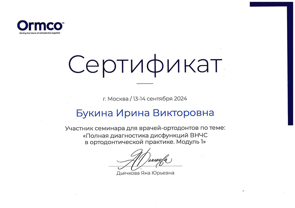- Ортодонтия: Башкирский государственный медицинский университет по специальности «Ортодонтия» в 2019 году.