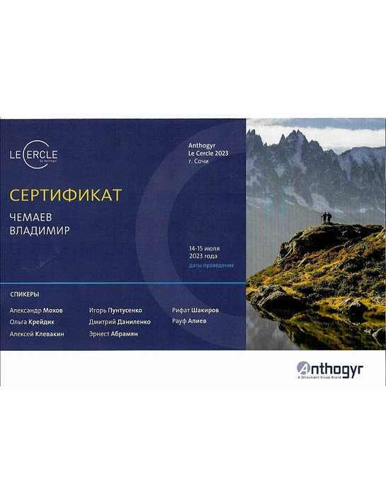 - В 2023 году 14-15 июля прошел обучение в г. Сочи на Le Cercle by Anthogyr.