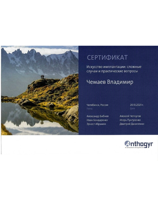 - В 2023 году получил сертификат «Практический курс цифровые решения для направленной хирургии Straumann».