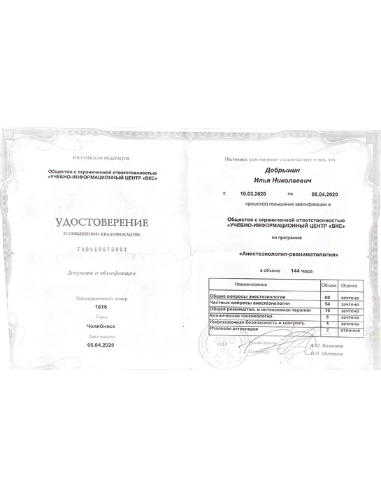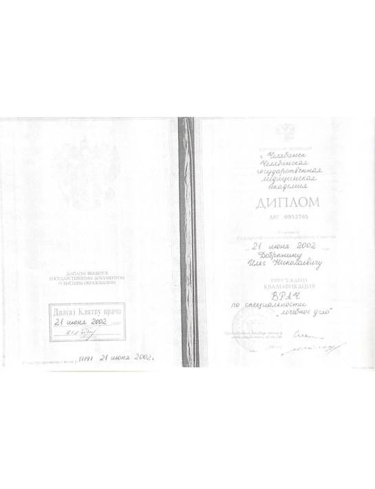 - Базовое образование: Челябинский Государственный Медицинский Университет по специальности «Лечебное дело» в 2002 году.