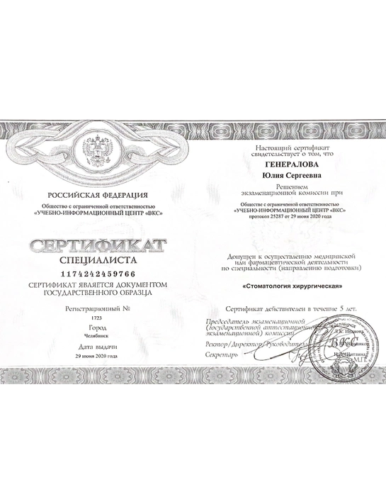 - В 2015 году прошла теоретический специализированный курс и мастер-класс для хирургов-имплантологов «Атравматичные методики костной пластики».
