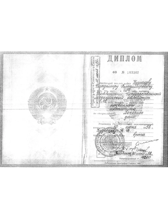 - Базовое образование: Челябинский Государственный Медицинский Университет по специальности «Лечебное дело» в 1992 году.