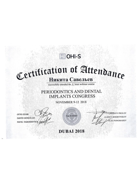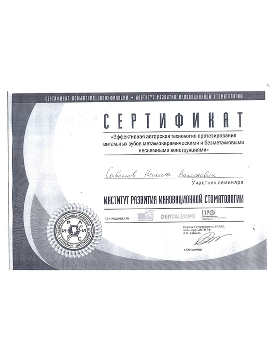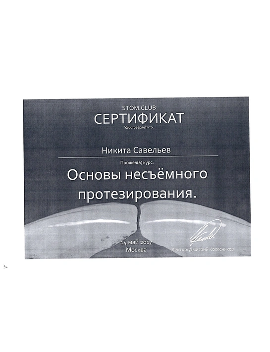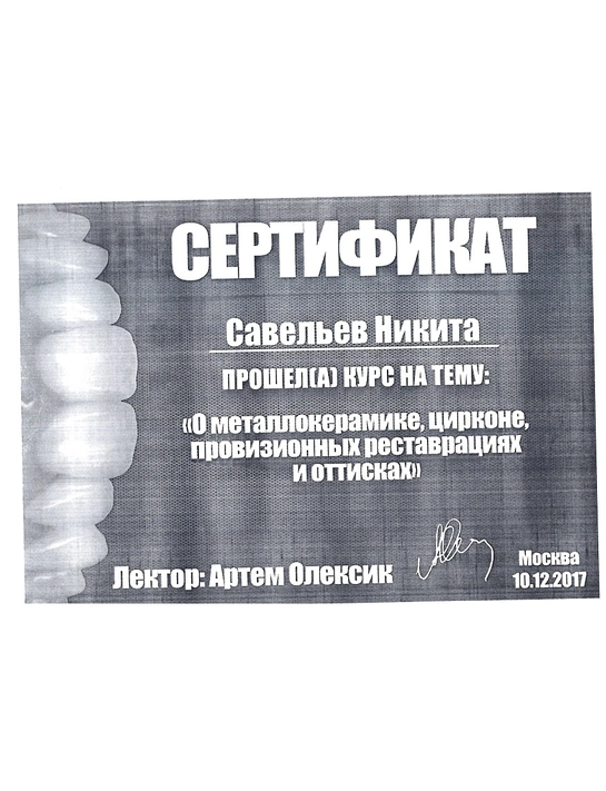 - В 2017 году прошёл обучение на курсе - «Основы несъемного протезирования», Москва
