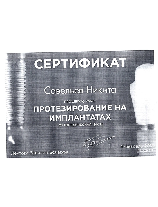 - В 2018 году прошёл обучение на курсе - «Протезирование на имплантах», Москва