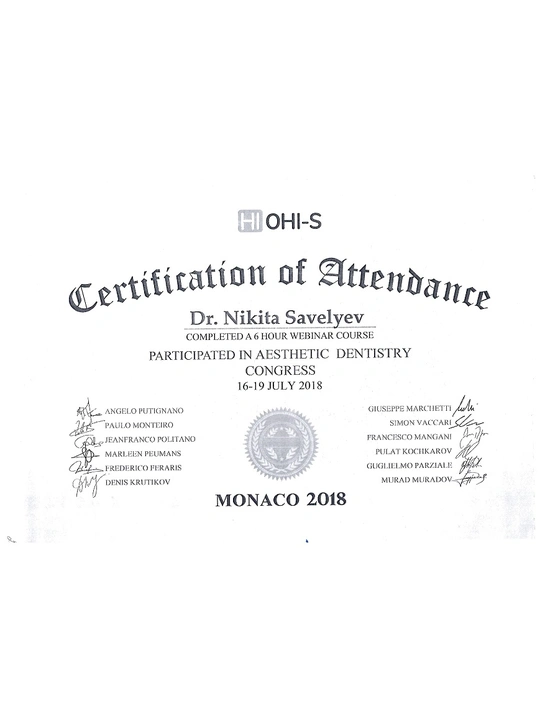 - В 2018 году прошёл обучение на курсе - «Participated in aesthetic dentistry congress (Конгресс по эстетической стоматологии)», Монако