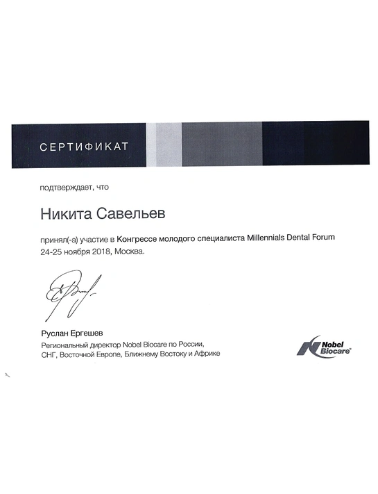 - В 2018 году прошёл обучение на курсе - Конгресс молодого специалиста Millennials Dental Forum, Москва