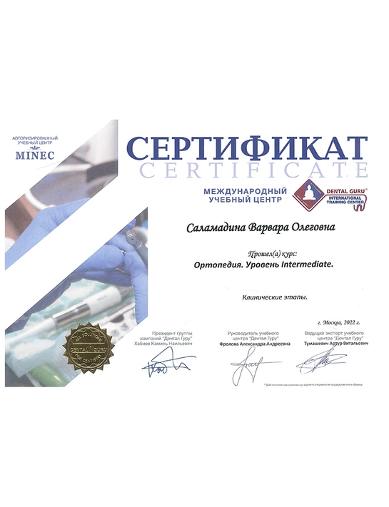 - В 2022 году прошла курс: "Ортопедия. Уровень Intermediate"