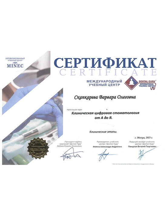 - В 2023 году прослушала курс: "Клиническая цифровая стоматология от А до я"