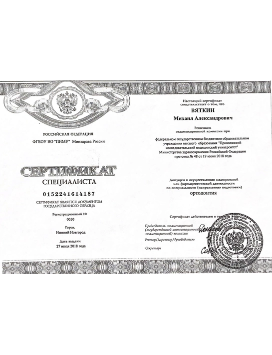 - Базовое образование: Уральский Государственный Медицинский Университет г. Екатеринбург, по специальности «Стоматология» в 2016 году.